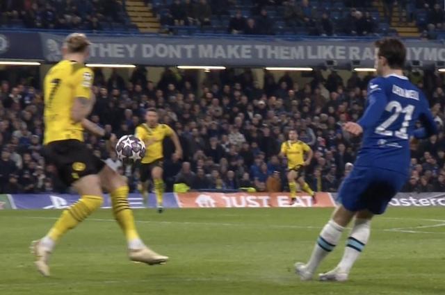 第28分钟,里斯·詹姆斯右路传中,多特后卫解围不远,哈弗茨迎球左脚怒射击中门柱弹出。